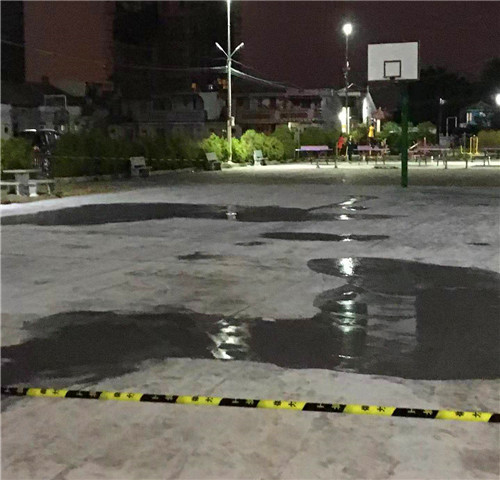 揭陽市揭東區(qū)霖磐鎮(zhèn)河頭村籃球場全場打磨,反復補積水
